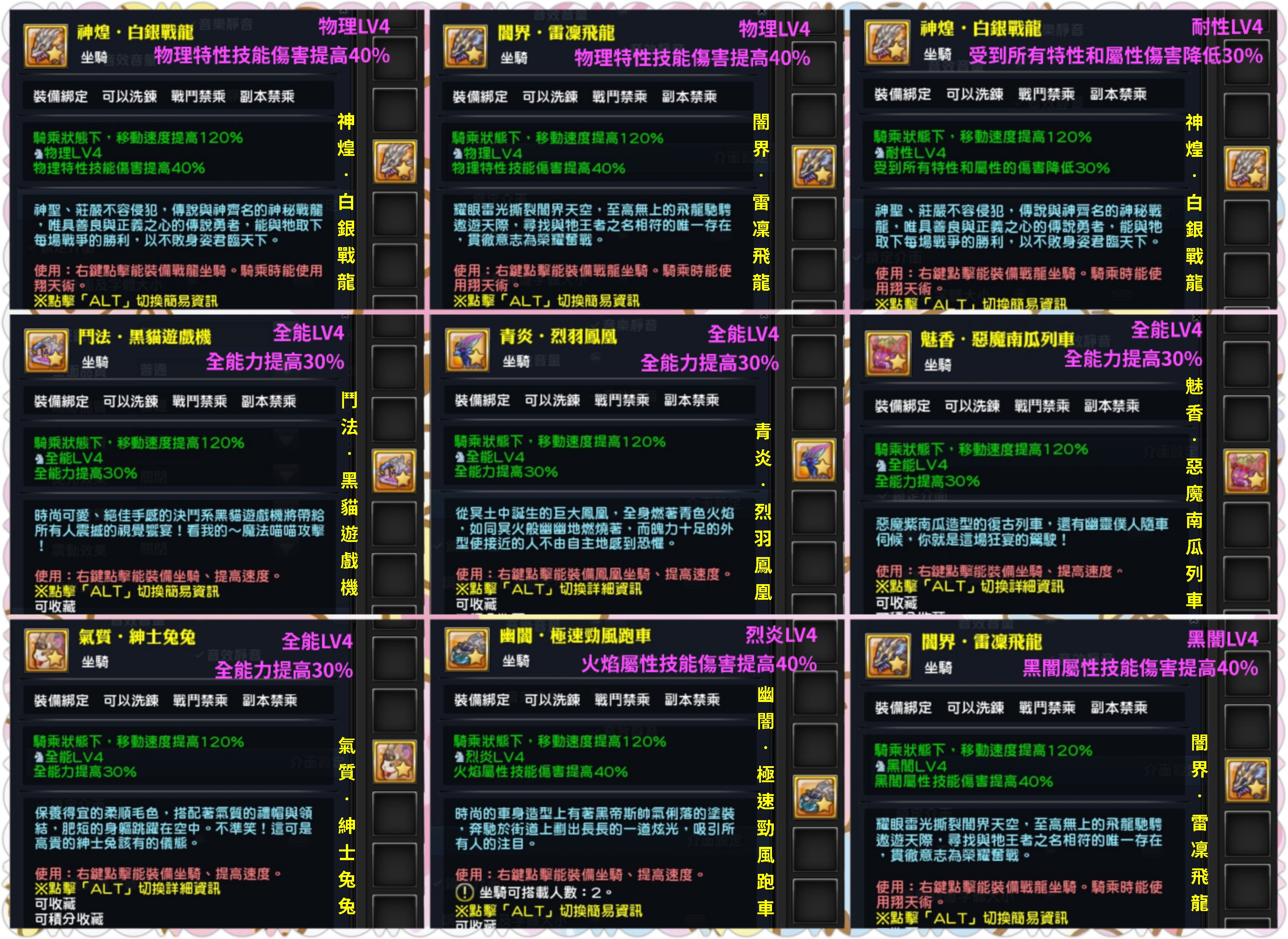 1.神煌.白銀戰龍-物理LV4《物理特性技能傷害提高40%》一隻 7446 T(實收 7000 T)
