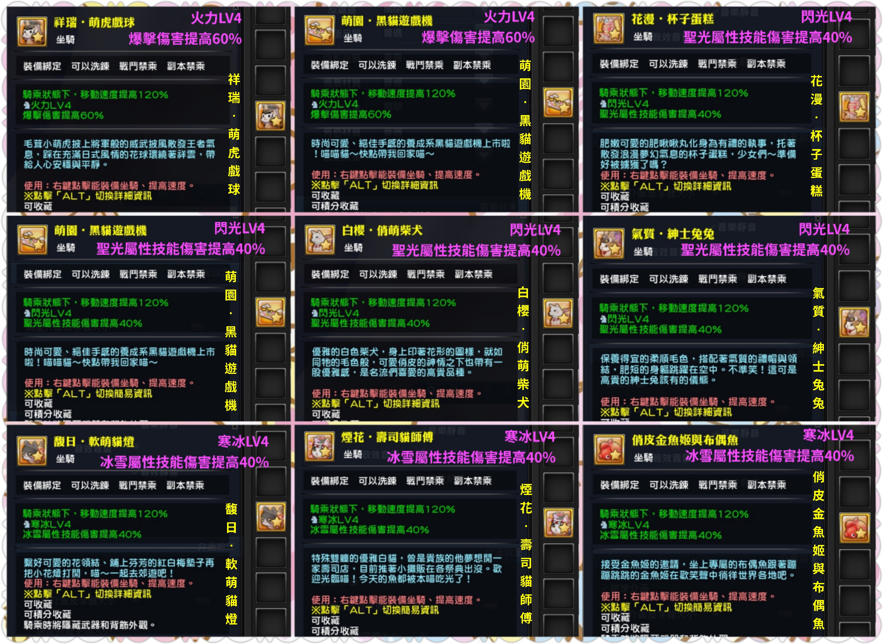 26.萌園.黑貓遊戲機-閃光LV4《聖光屬性技能傷害提高40%》一隻 744 T(實收 700 T)降到眼神死