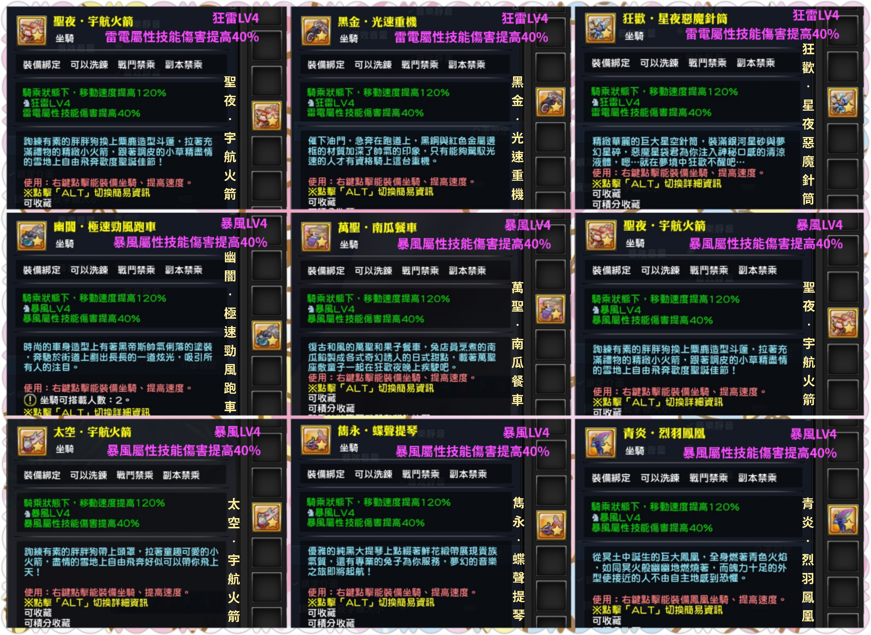 7.幽闇.極速勁風跑車-烈炎LV4《火焰屬性技能傷害提高40%》一隻 4787 T(實收 4500 T)
