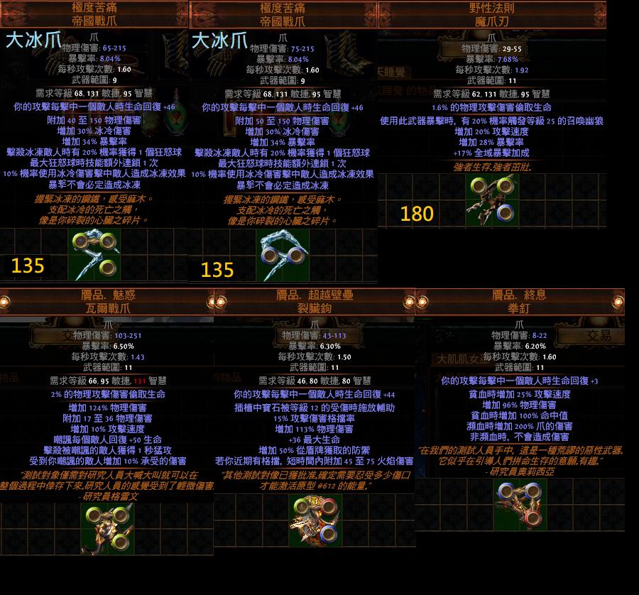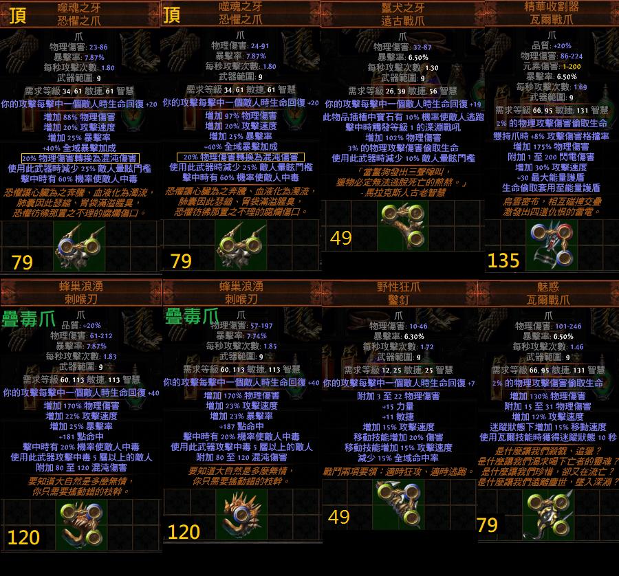 單手武器『匕首』『單手劍』『單手斧』『單手錘』『權杖』『法杖』『爪』『細劍』