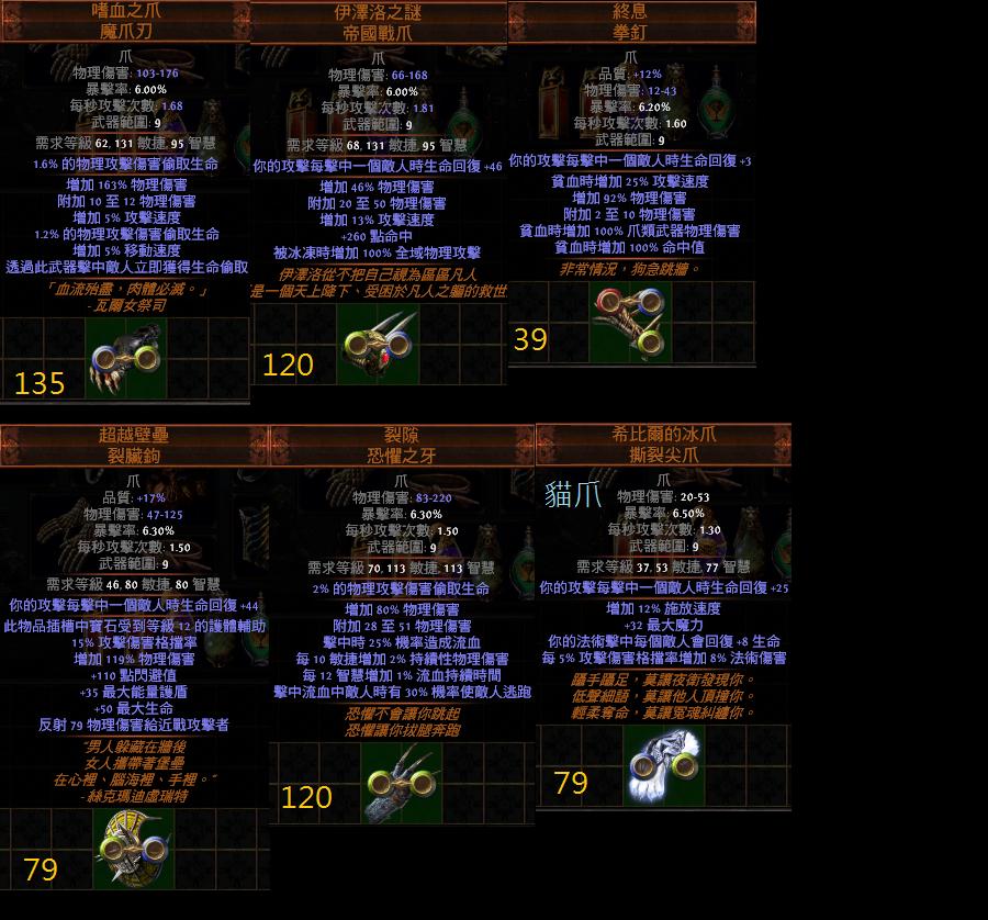 其他『箭袋』『珠寶』『深淵珠寶』『藥水』『地圖』『技能』『雜項』