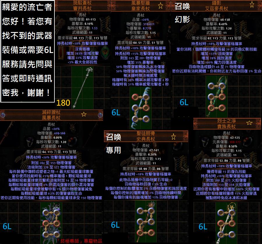 在交易時請放上一件您不需要的物品。例如武器、防具、技能石、地圖、材料、捲軸....等等