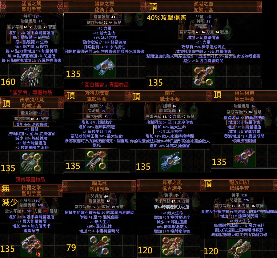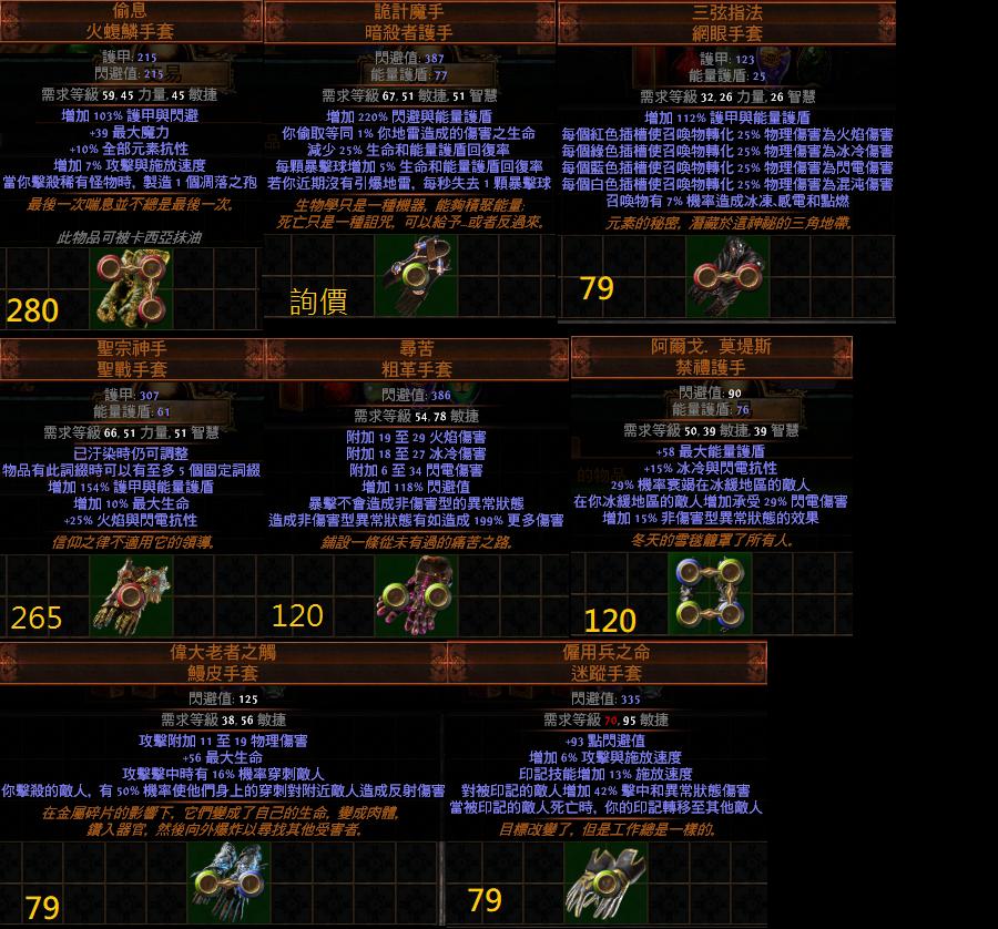 道具 【通牒】 『手套』闇核、偷息、聖宗、馬雷、怨恨、悖逆、詭計、厄斯、陵拳、虛空、夜織