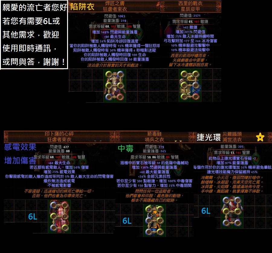 在交易時請放上一件您不需要的物品。例如武器、防具、技能石、地圖、材料、捲軸....等等