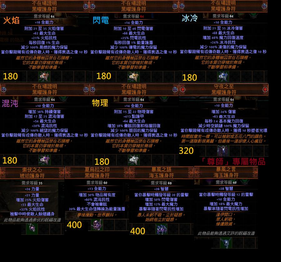 道具 【通牒】 『護身符項鍊』索伏、群魔、奧爾、獠牙、先祖、均衡、閉鎖、屠戮、激情、柳木