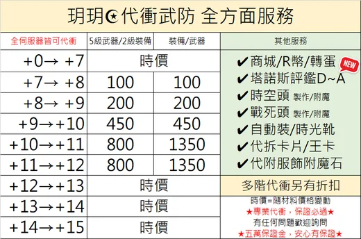 👉全伺服器:代衝武防/保證過/代衝武器防具各式裝備 (點我連結)