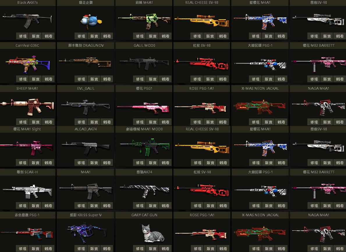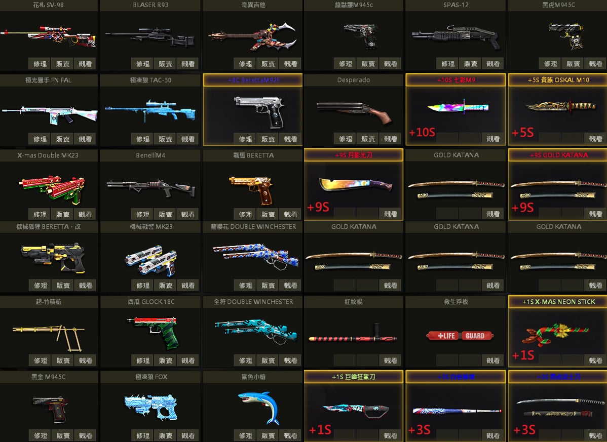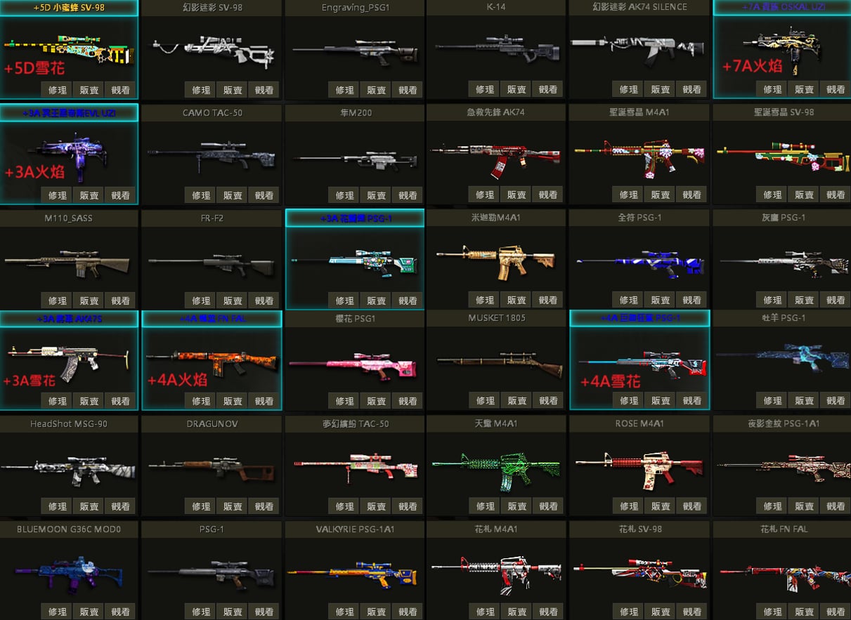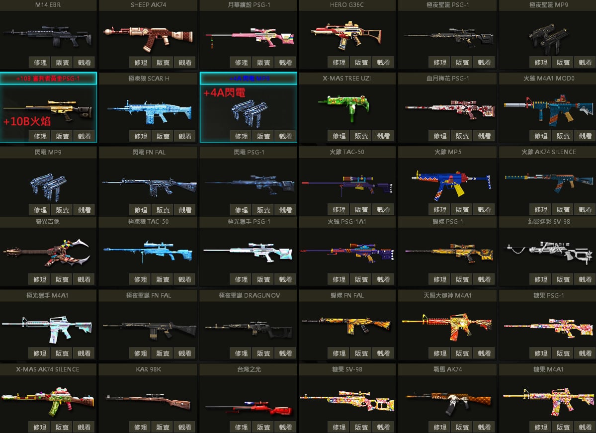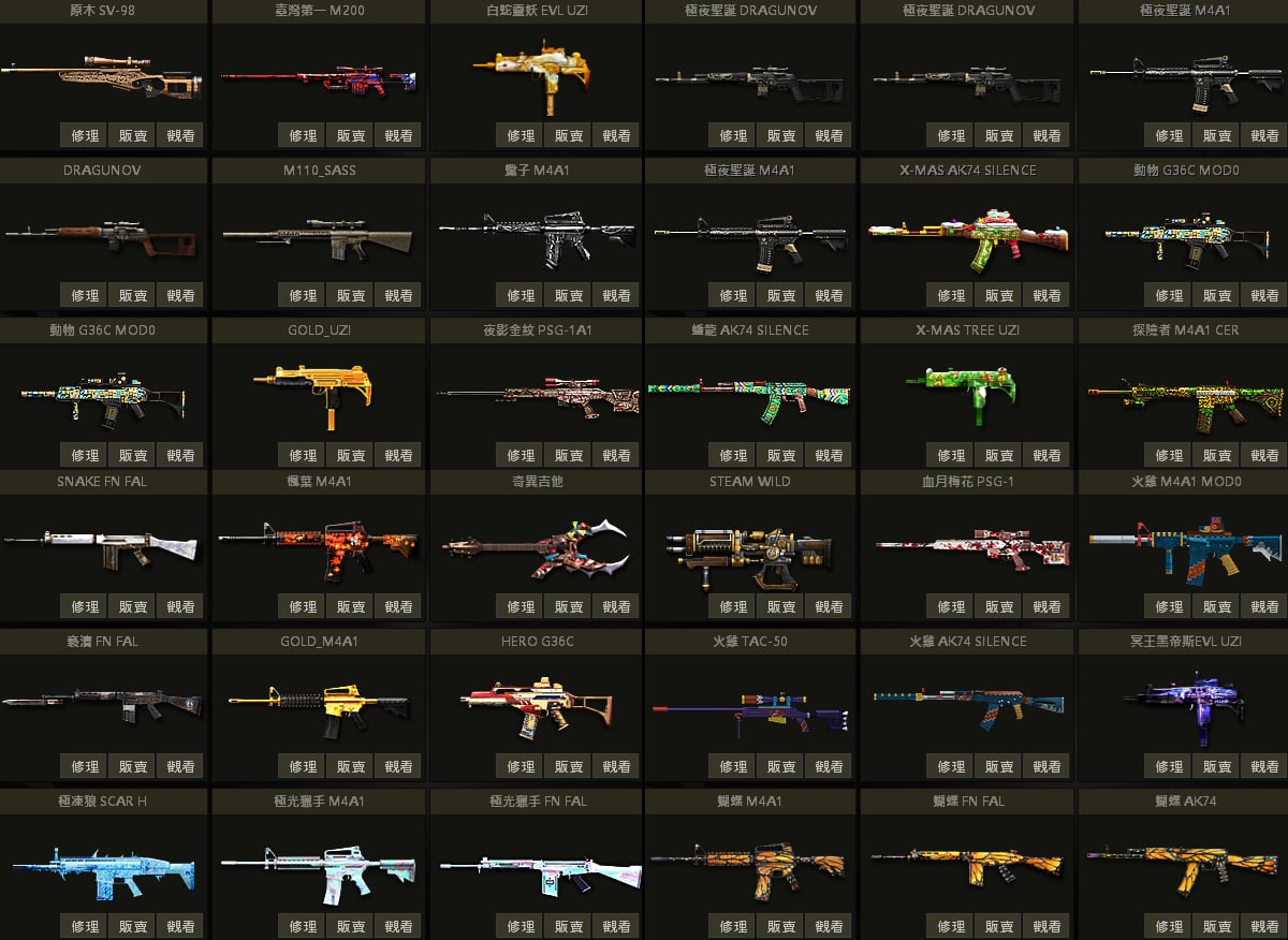 白蛇UZI、聖誕U、戰馬AK、急救AK、夢魘AK