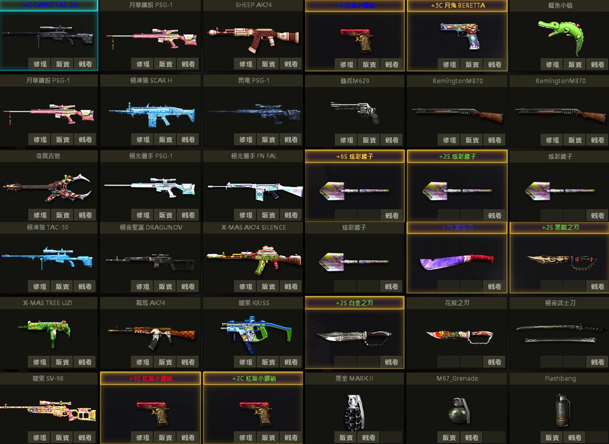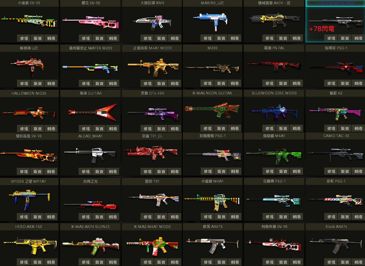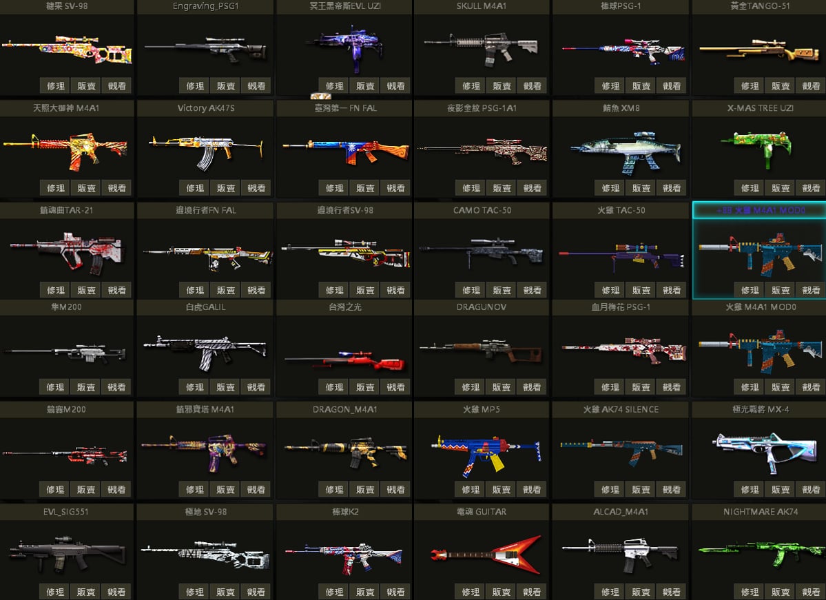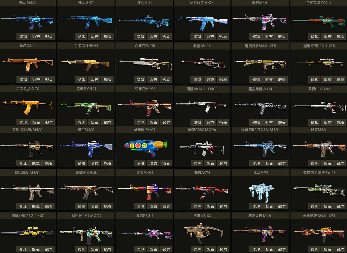 白蛇UZI、聖誕U、戰馬AK、急救AK、夢魘AK