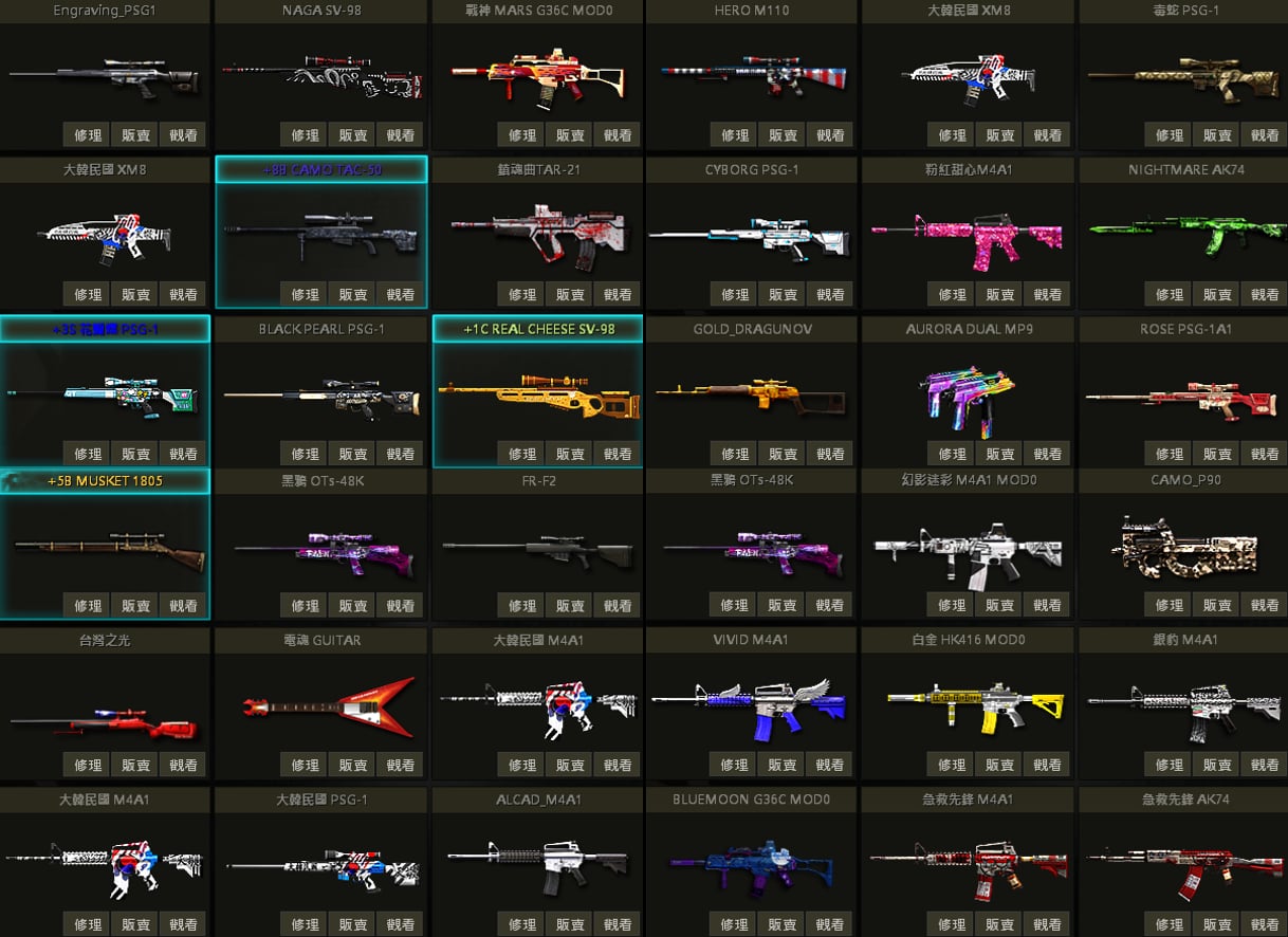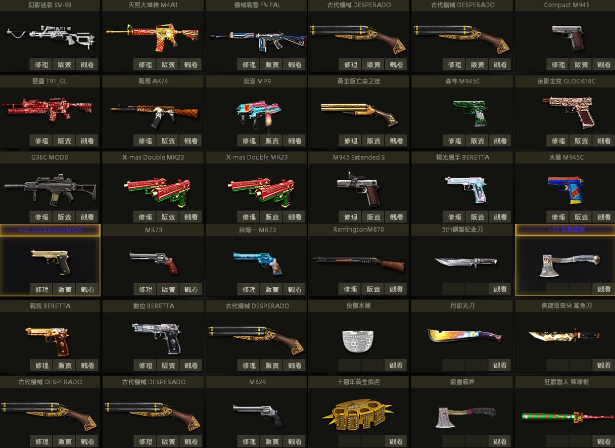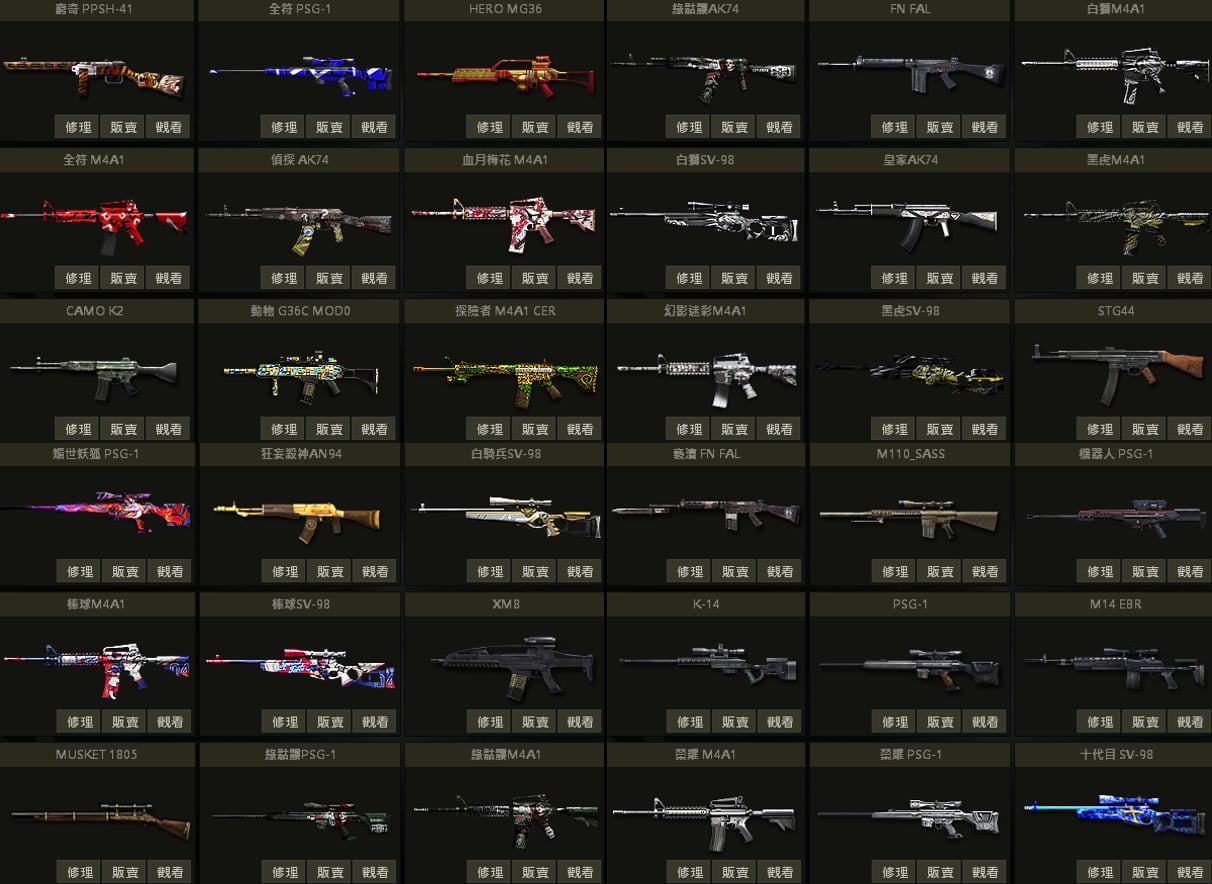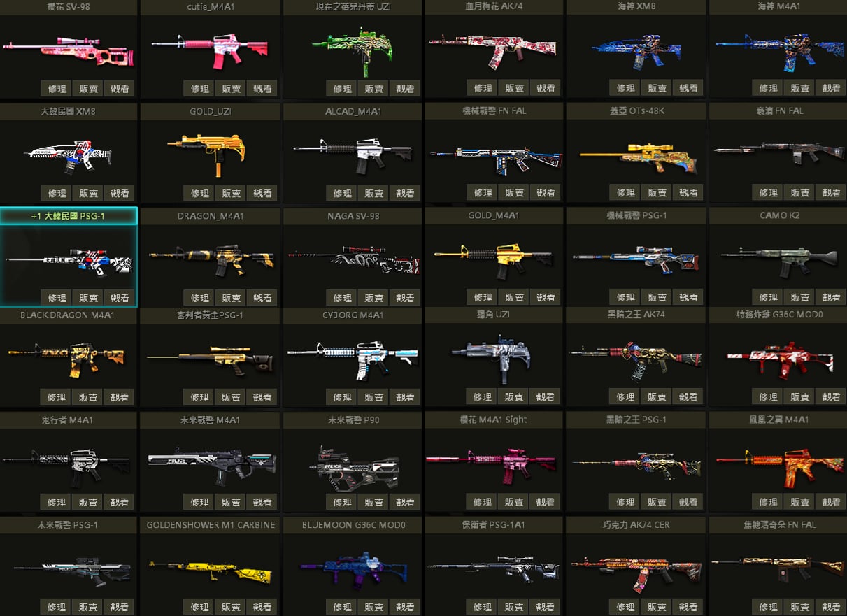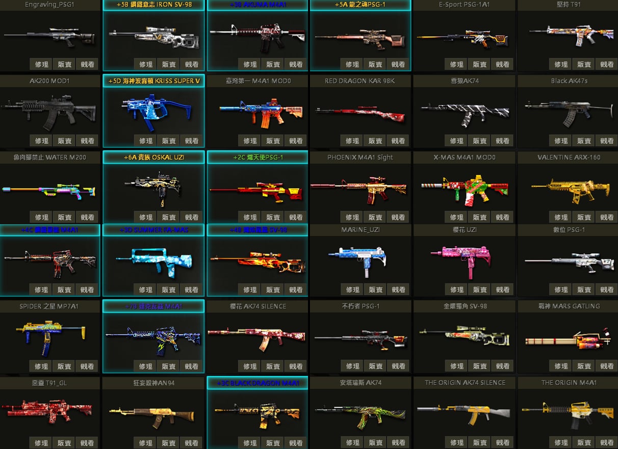 白蛇UZI、聖誕U、戰馬AK、急救AK、夢魘AK