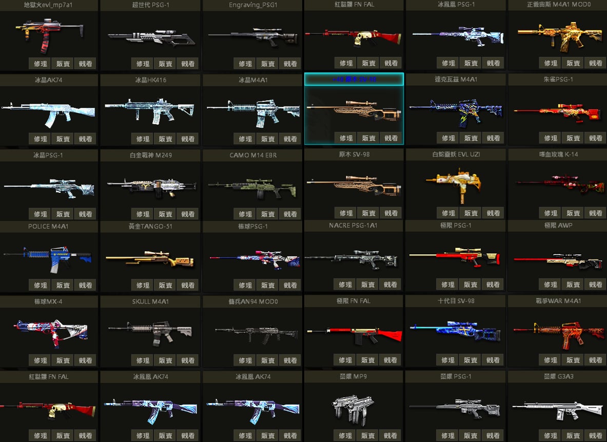 幻影迷彩SV、原木SV、白金PSG、黃金PSG