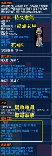 終焉女甲 死神5 賦予持久意氣~槍衝範圍+導電拳擊傷害