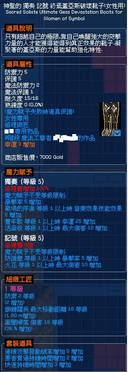 終焉破壞靴(女)死神5~黑闇掃蕩+鎖鏈躍疾 雙屬性