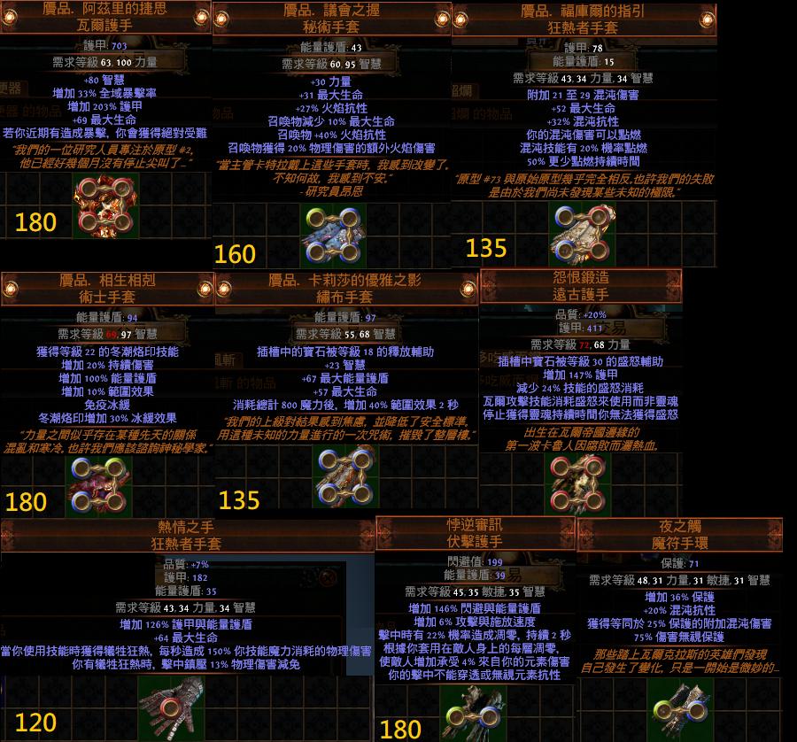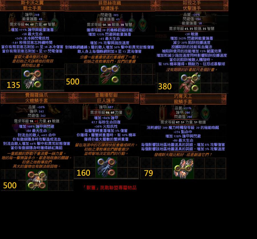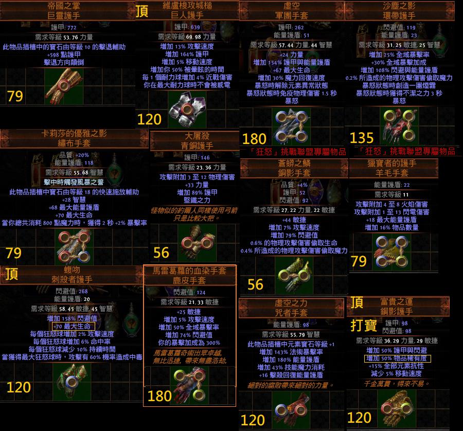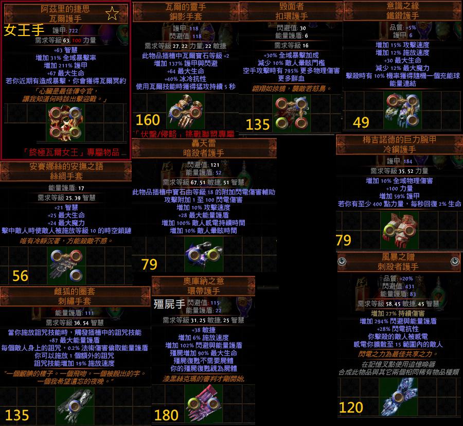 道具 【探險】 『手套』闇核、偷息、聖宗、馬雷、怨恨、悖逆、詭計、厄斯、陵拳、虛空、夜織