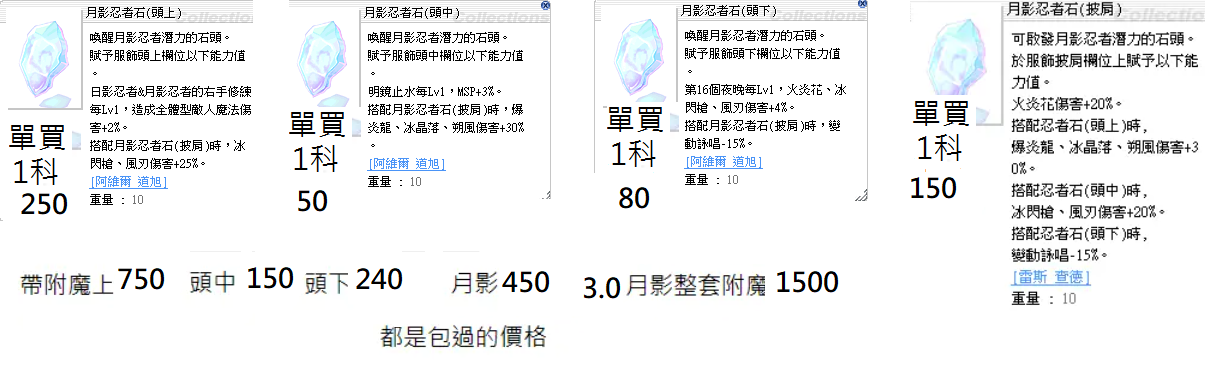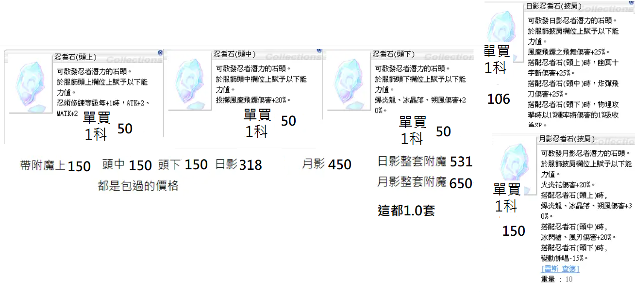 道具 客製化服飾附魔 忍者石/月影忍者石/日影忍者石 披肩服飾成品上中下成品