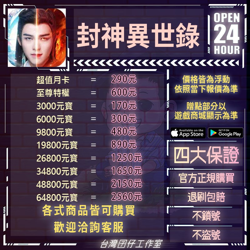 代儲【3000元寶=170元】 🏆24H客服🏆封神異世錄🔥現貨秒出🔥台灣囝仔🔥退刷包賠🔥