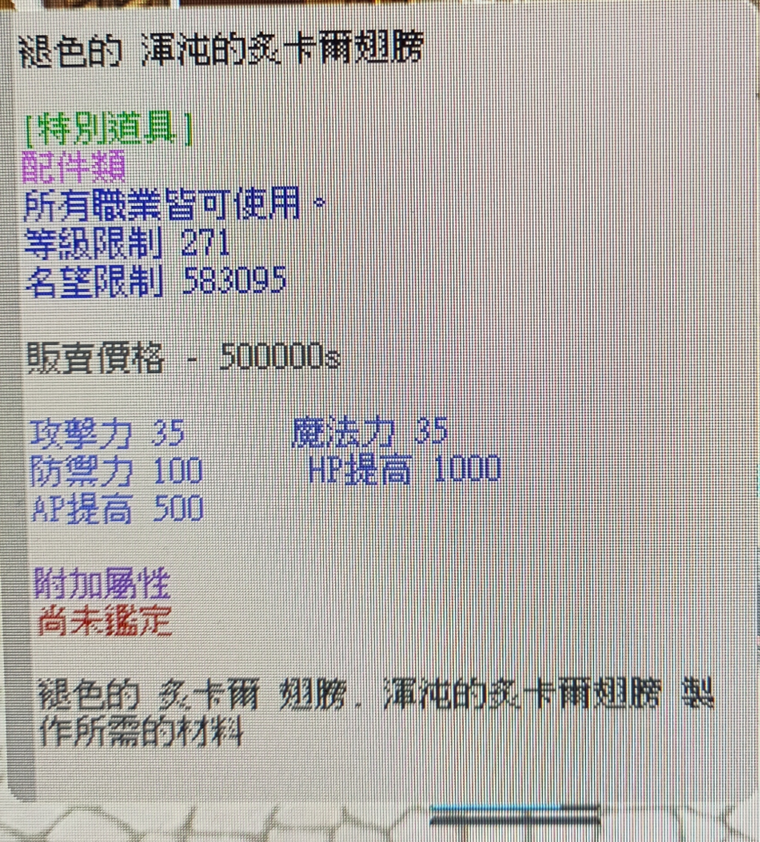 褪色的 渾沌的炙卡爾翅膀*1+褪色的 純白的坦柏特翅膀*1