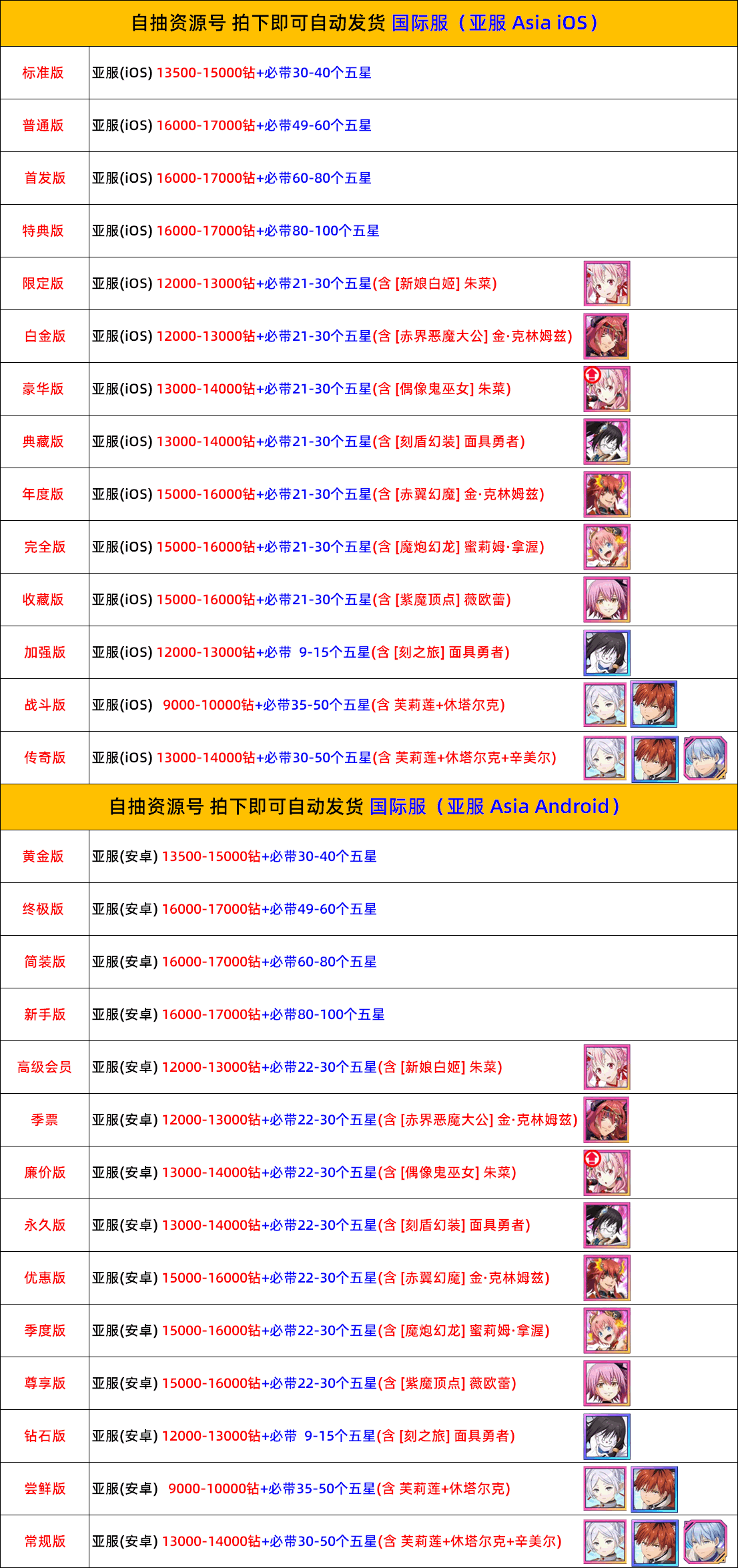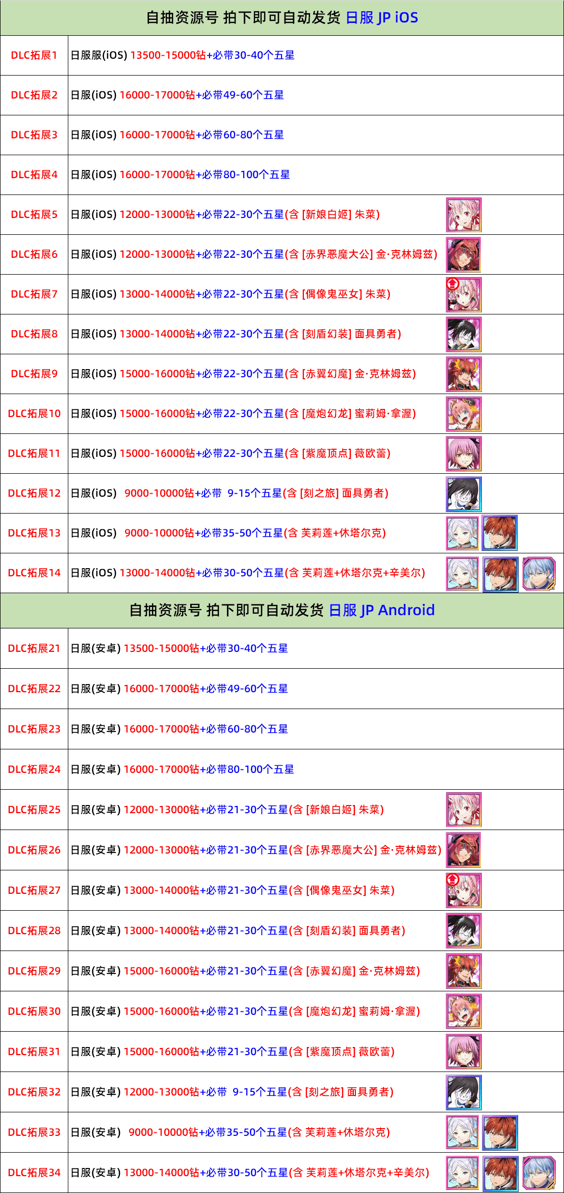 遊戲帳號內容已清楚打出來 沒打出來的皆為隨機附送 不要自己亂加東西 資源 再說帳號上怎沒有 後續出現問題 一律以賣家公布為主 介意勿買