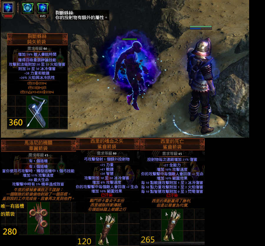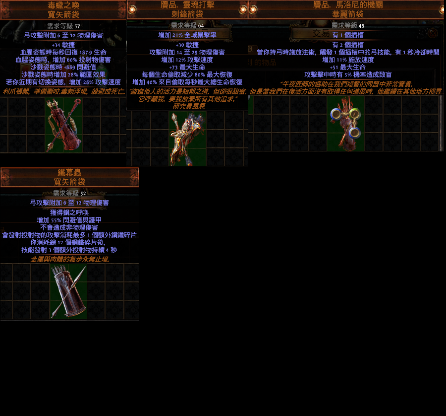 其他『箭袋』『珠寶』『深淵珠寶』『藥水』『地圖』『技能』『雜項』