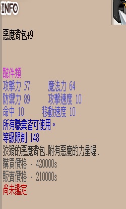 本商品為惡魔背包N+9(未鑑定)