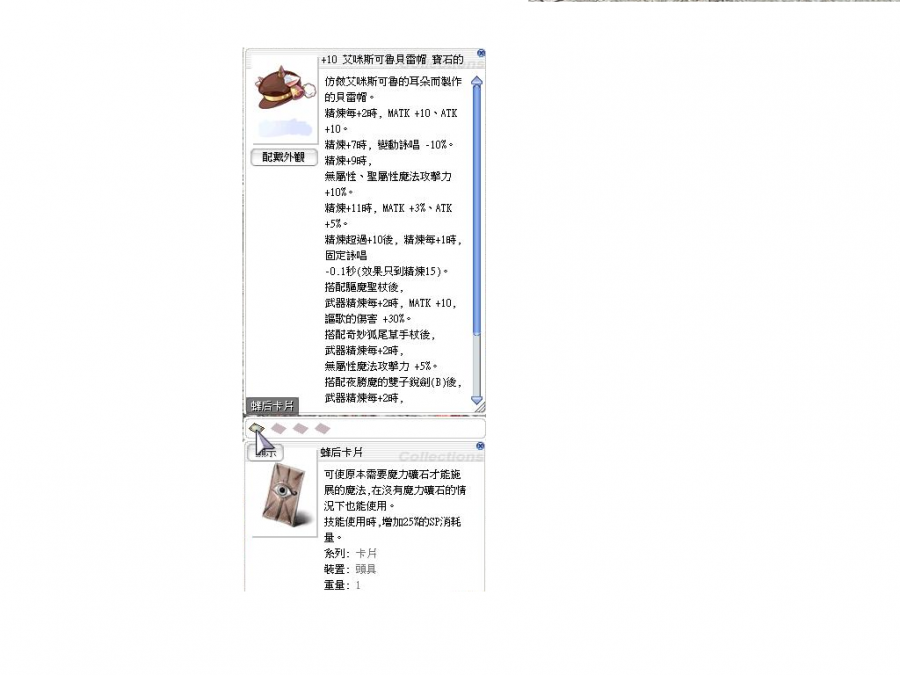 道具 +10艾咪斯可魯貝雷帽(以插正蜂后卡)主教謳歌妖術專用
