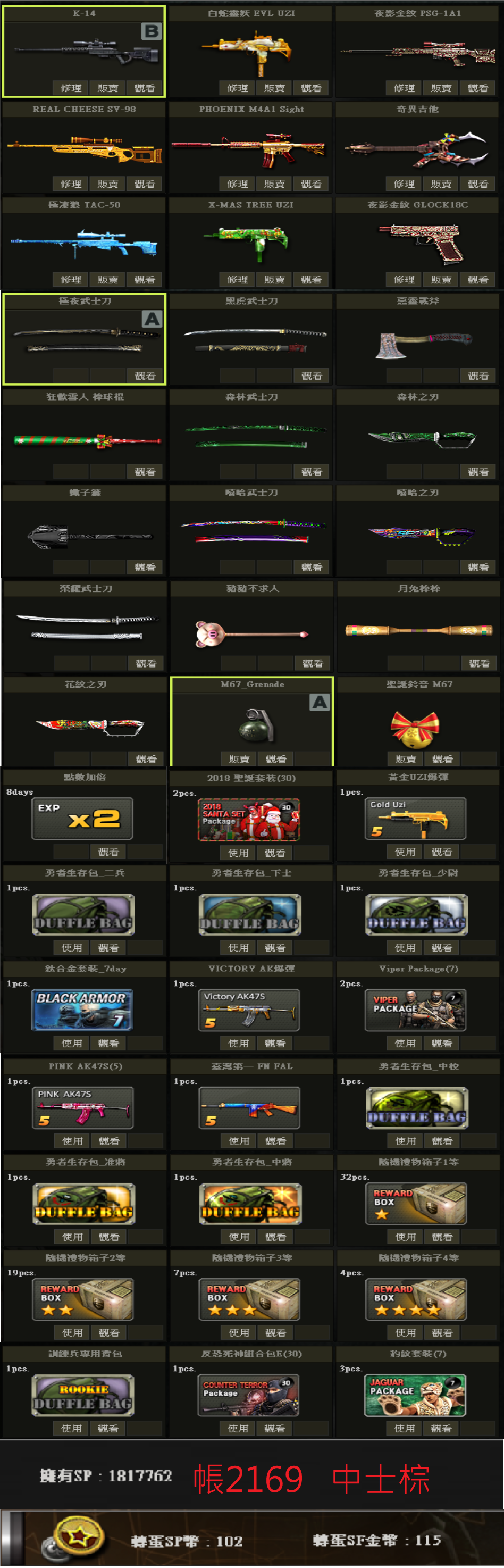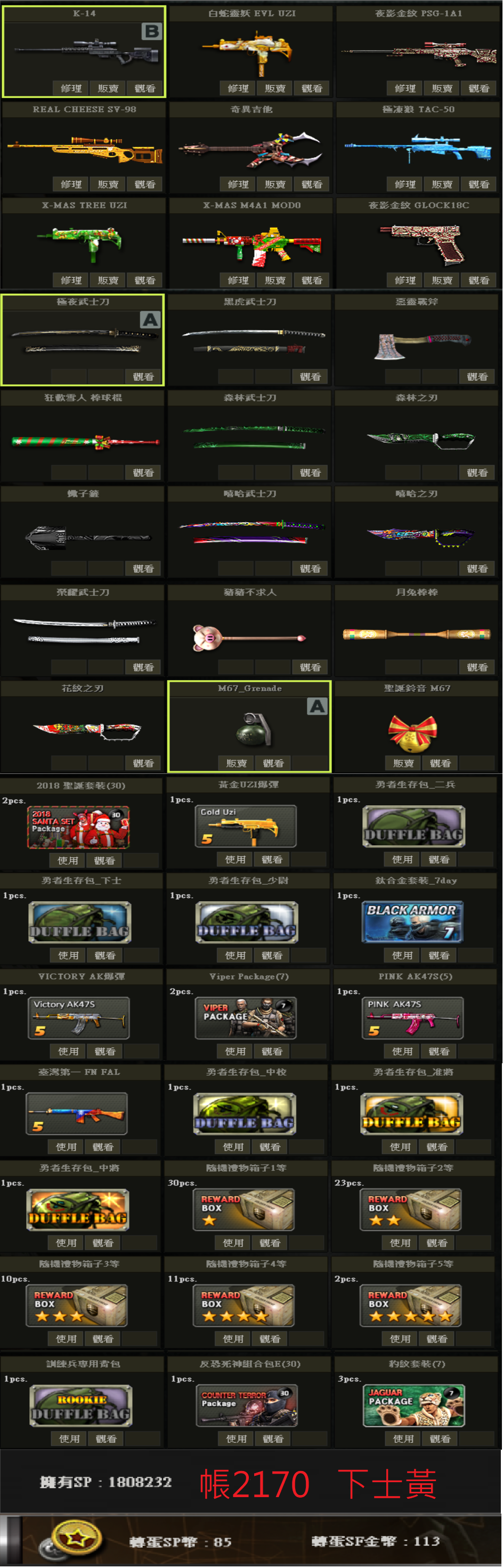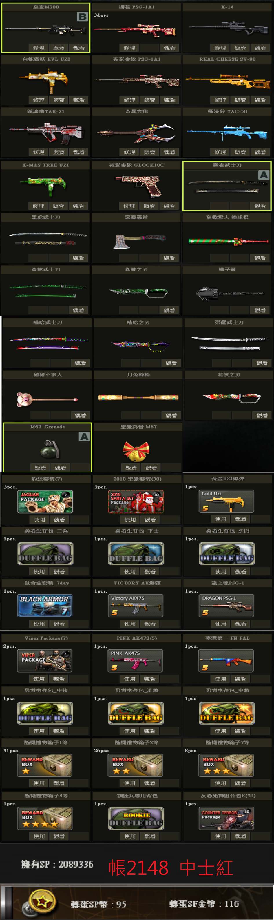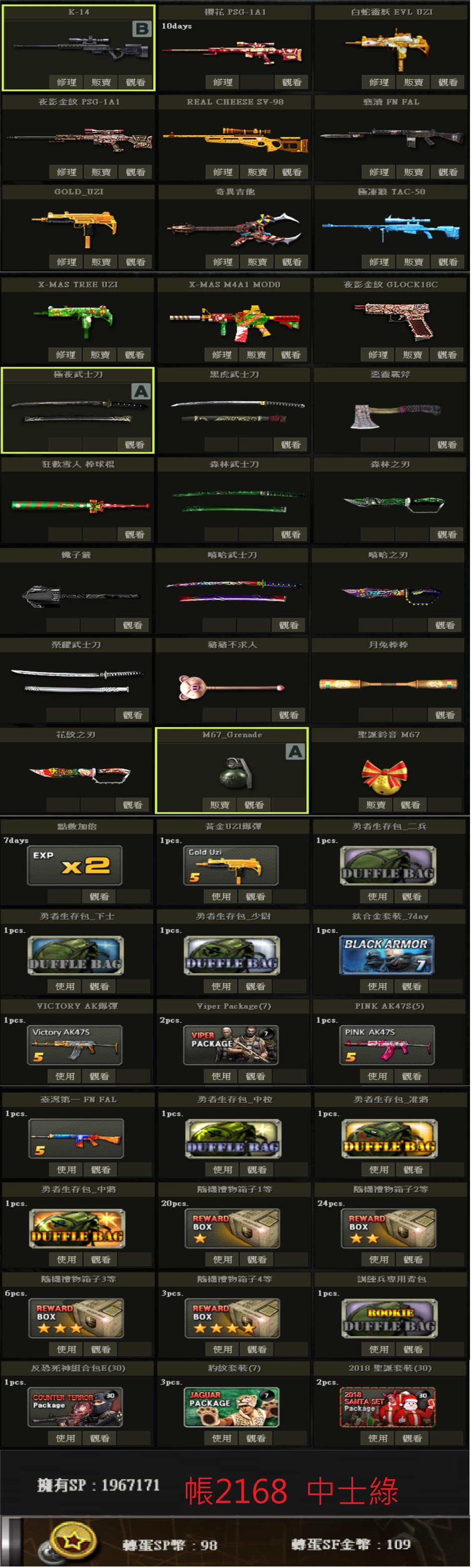 帳號 3/23更新 新兵初階號 低軍階 SV98 白P E版UZI 多刀 物品如圖