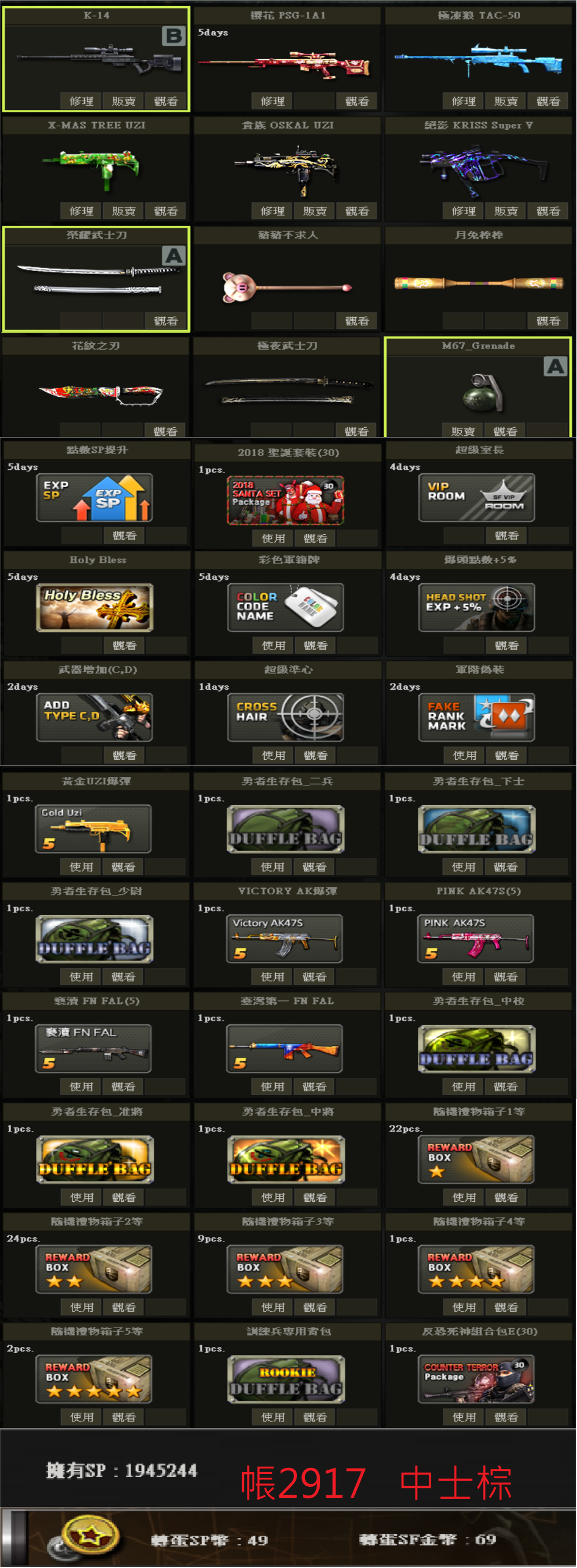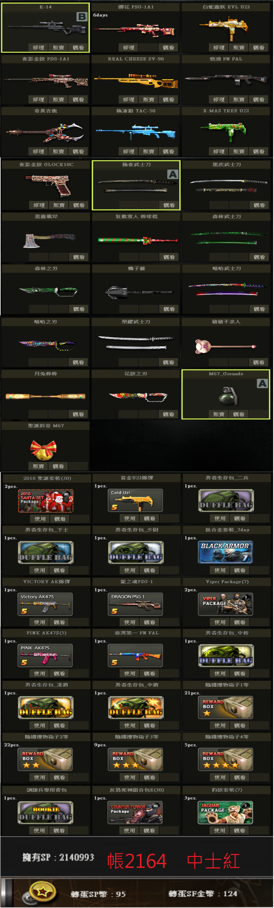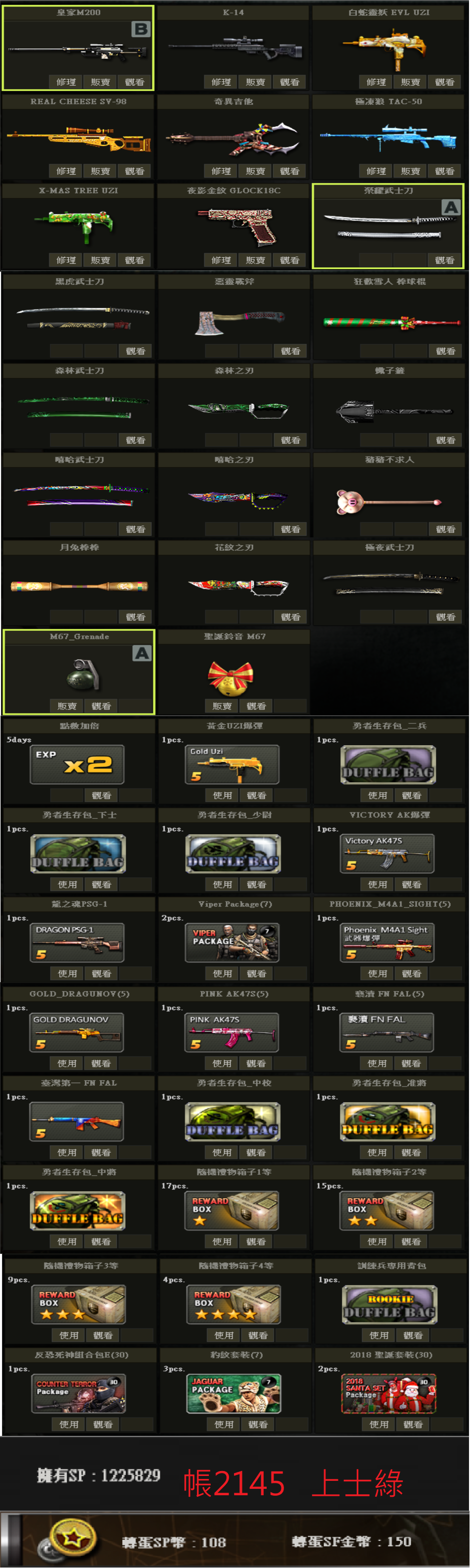 帳號 3/23更新 新兵初階號 低軍階 SV98 白P E版UZI 多刀 物品如圖