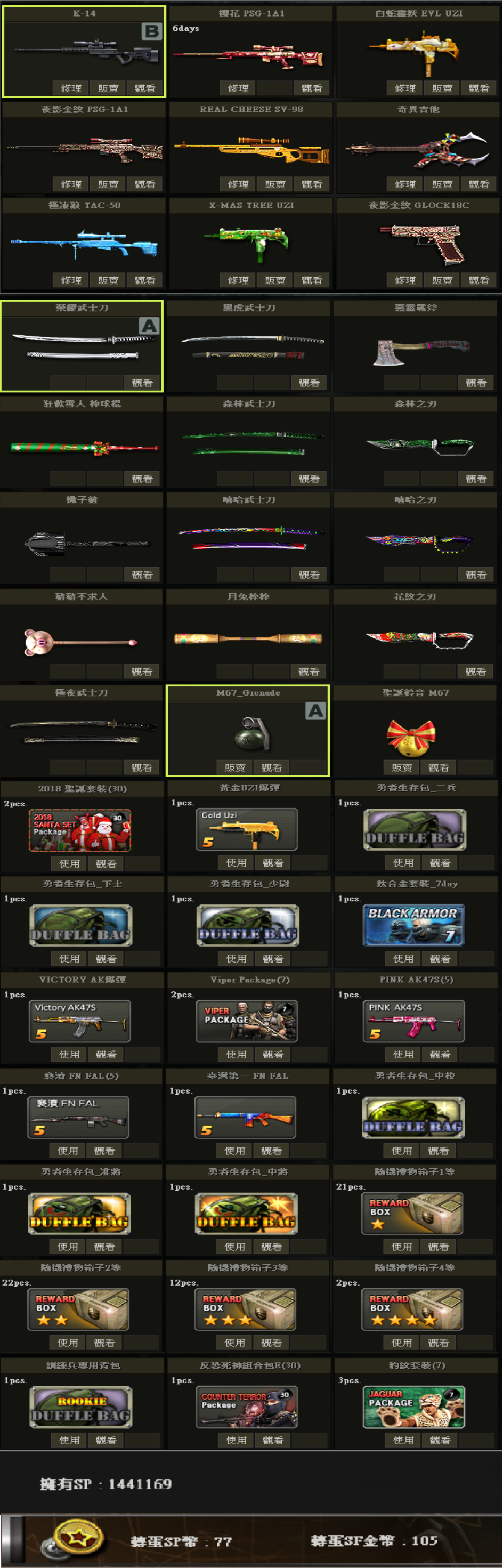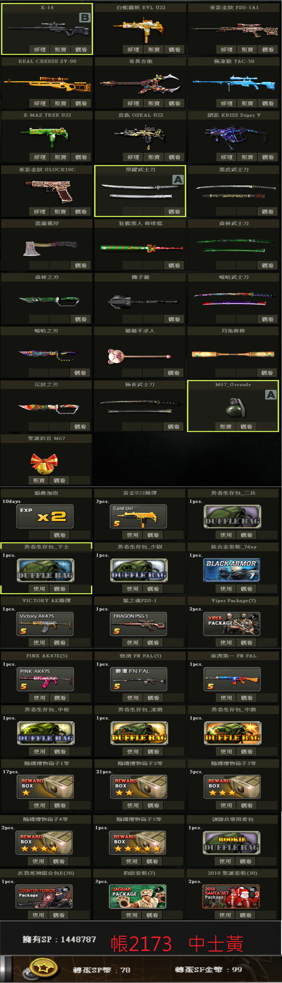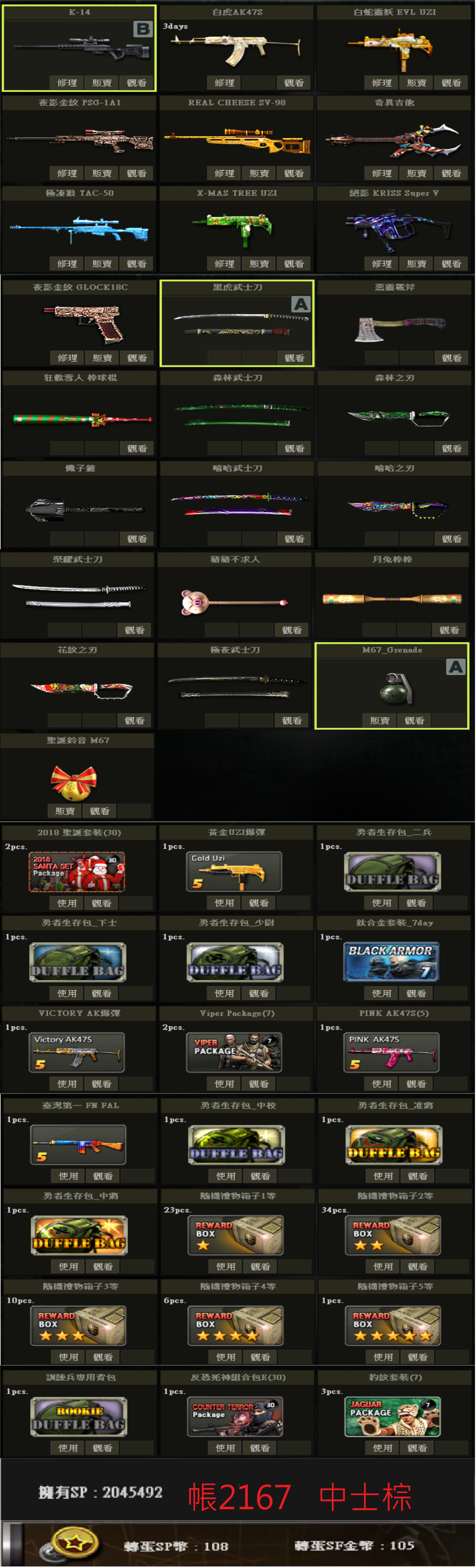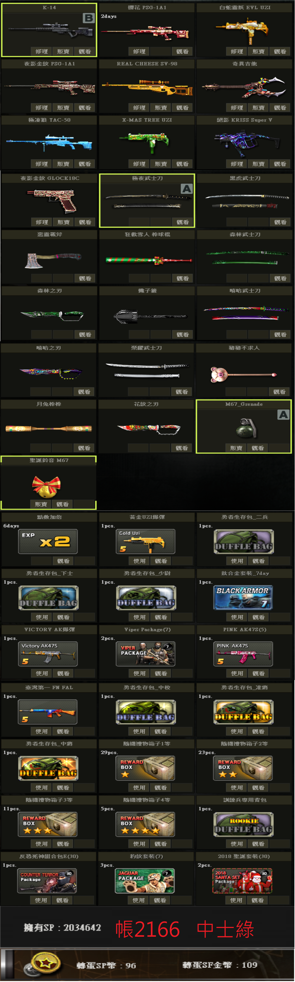 帳號 3/23更新 新兵初階號 低軍階 SV98 白P E版UZI 多刀 物品如圖