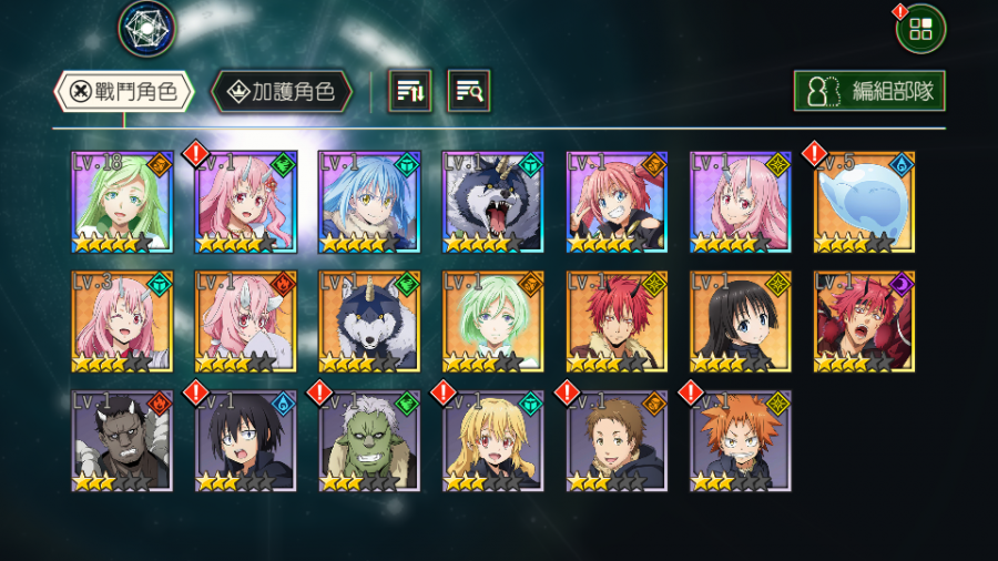 【A073】 7個五星 角色:托蕾妮【地屬 深綠的新芽】+蜜莉姆【地屬 最老魔王之一】+利姆路【空屬 魔國聯邦盟主】+蘭加【空屬 黑嵐星狼】+朱菜【光屬 魅麗巫女姬】+朱菜【風屬 天照桃鬼】+加護:精靈守護巨象【地屬 魔偶】