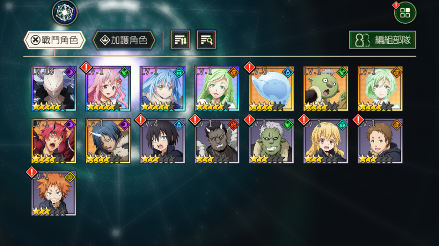 【A070】 5個五星 角色:托蕾妮【地屬 深綠的新芽】+貝瑞塔【暗屬 魔將人偶】+利姆路【空屬 魔國聯邦盟主】+朱菜【風屬 天照桃鬼】+加護:精靈守護巨象【地屬 魔偶】