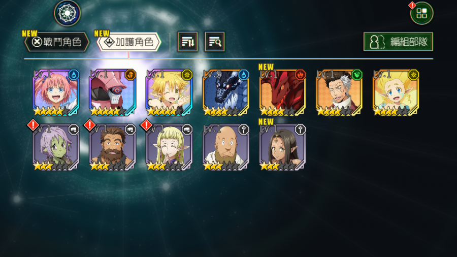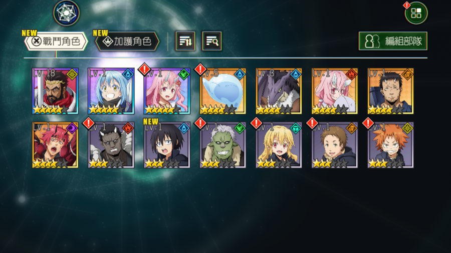 【B028】 6個五星 角色:蓋札【光屬 武裝國家之王】+利姆路【水屬 人魔共榮】+朱菜【風屬 天照桃鬼】+加護:+蜜莉姆【水屬 好戰龍眼】+精靈守護巨象【地屬 魔偶】+菈米莉絲【光屬 迷宮妖精】