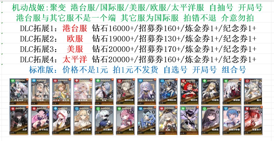 遊戲帳號內容已清楚打出來 沒打出來的皆為隨機附送 不要自己亂加東西 資源 再說帳號上怎沒有 後續出現問題 一律以賣家公布為主 介意勿買