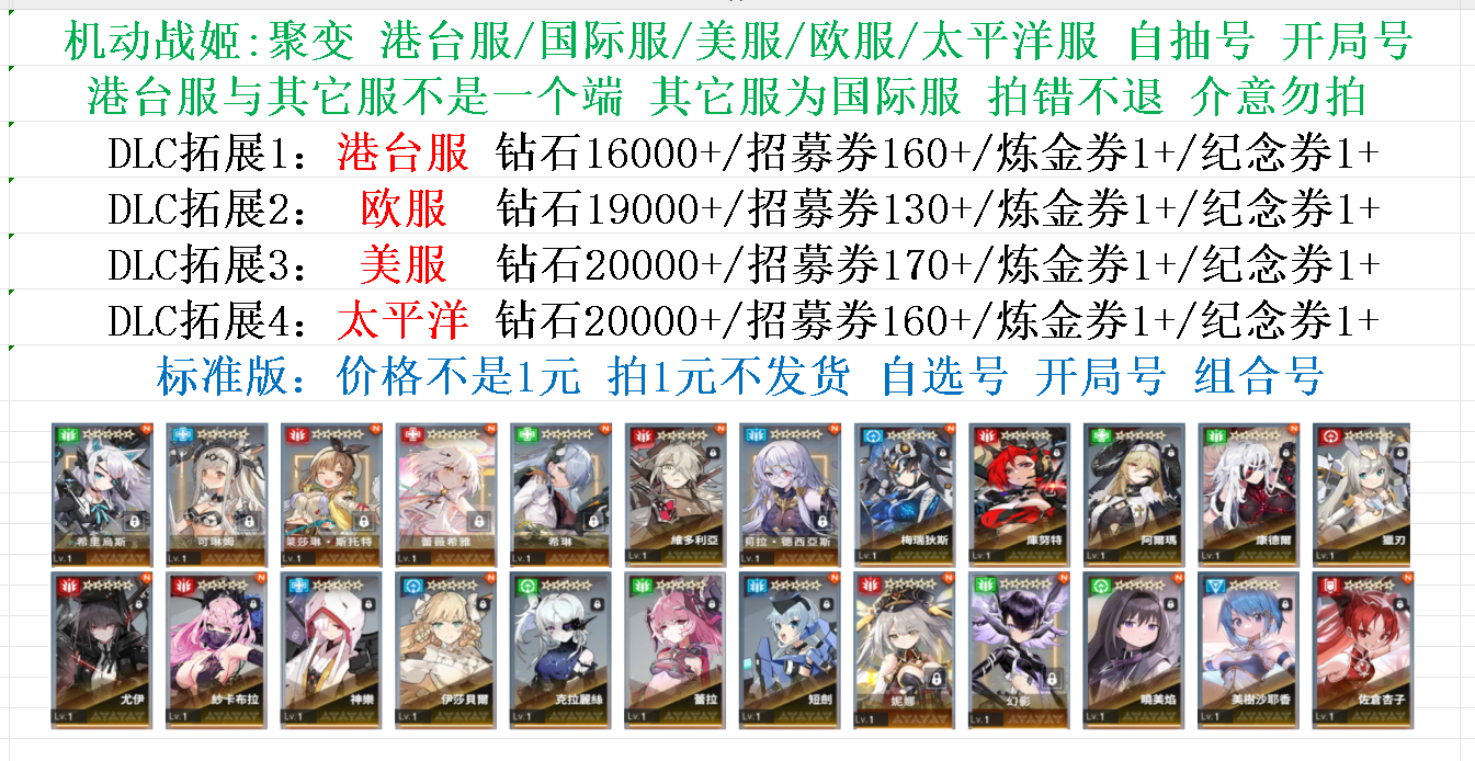 DLC拓展3 美服 發鑽石16000+/招募券110+/煉金券1+/紀念券1+