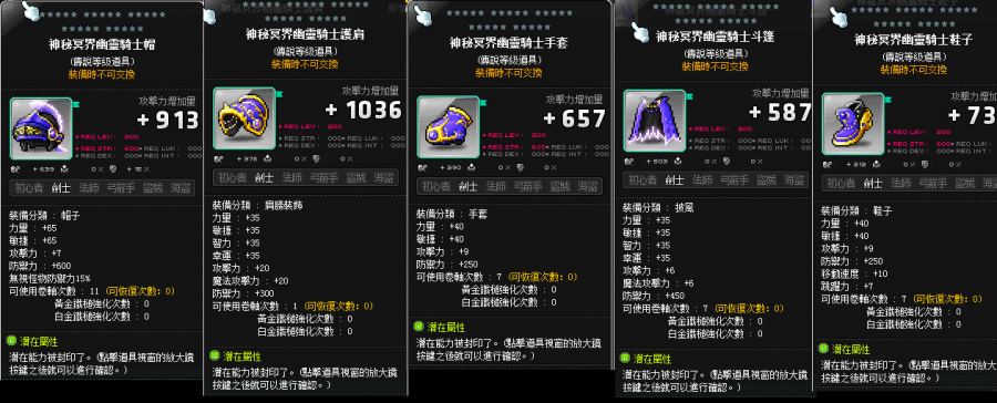 道具 傳說神秘防具:200神秘冥界幽靈騎士一套(傳說未開) 200防具劍士防具5SET