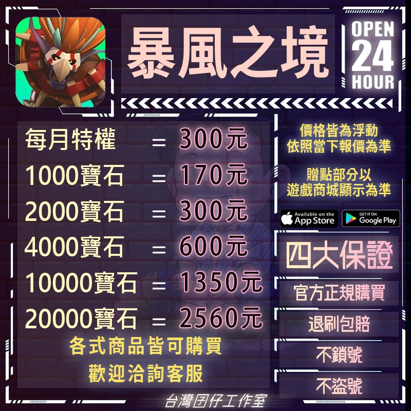 代儲【1000寶石=170元】 🏆24H客服🏆暴風之境🔥現貨秒出🔥台灣囝仔🔥退刷包賠🔥
