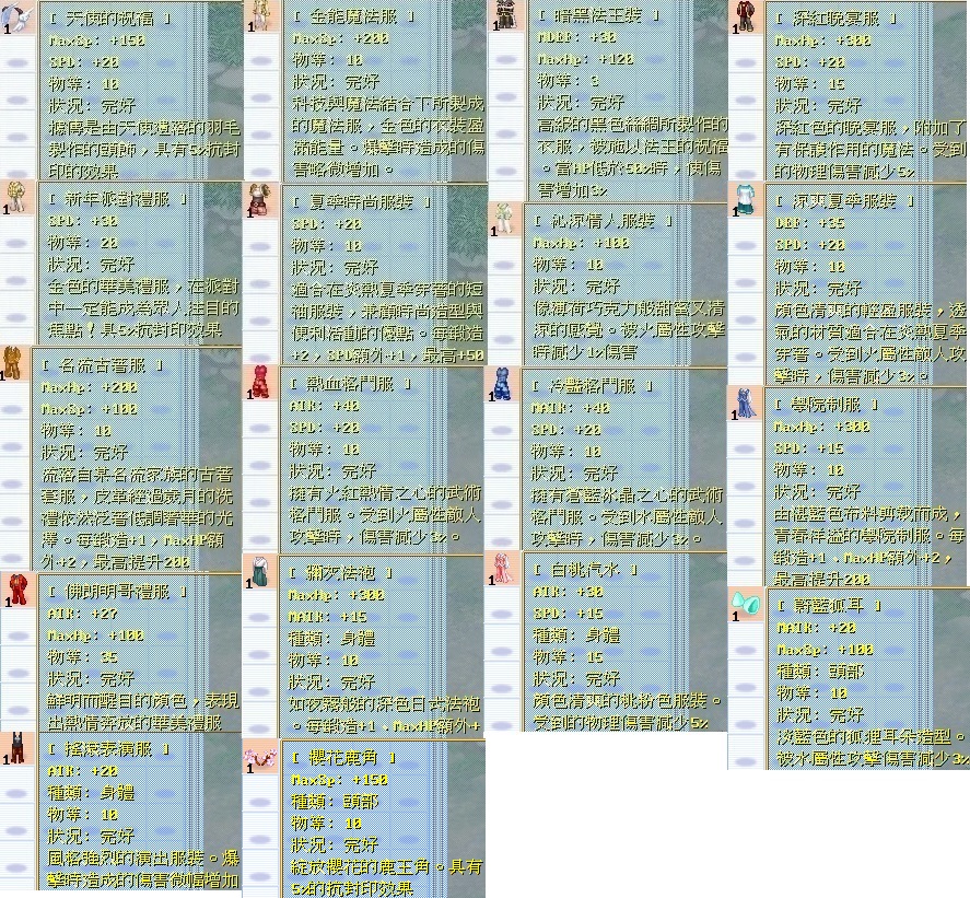 裝備.角色.任務 (可直接點選連結,也可以練現貨沒有)