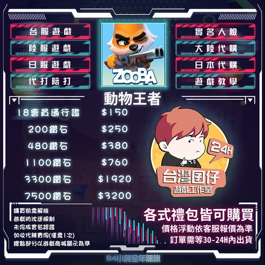 代儲【480寶石=300元】 🏆24H客服🏆動物王者Zooba🔥現貨秒出🔥台灣囝仔🔥退刷包賠🔥