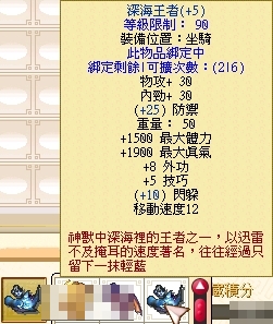 深海王者 90 體力+1500、真氣+1900、外功+8、技巧+5、物攻+30、內勁+30