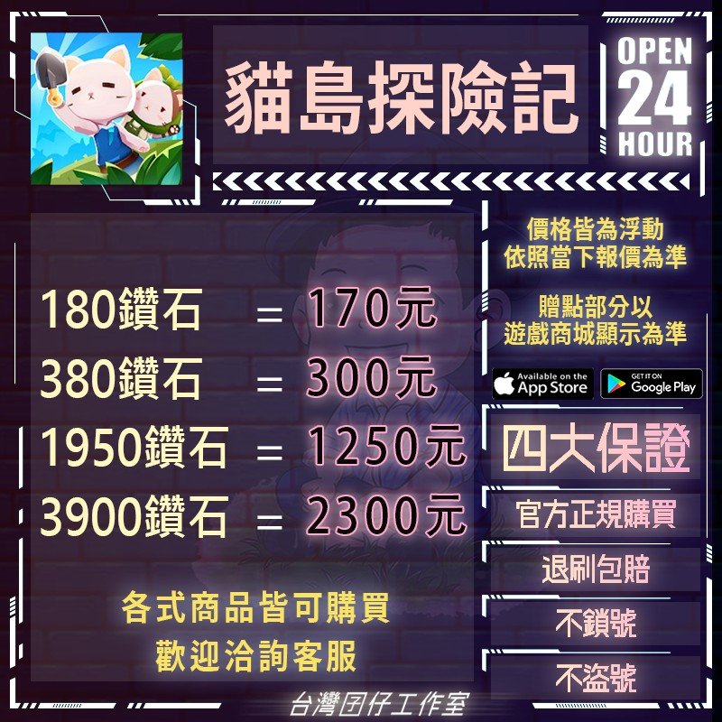 代儲【3900鑽石=2300元】 🏆24H客服🏆貓島探險記🔥現貨秒出🔥台灣囝仔🔥退刷包賠🔥