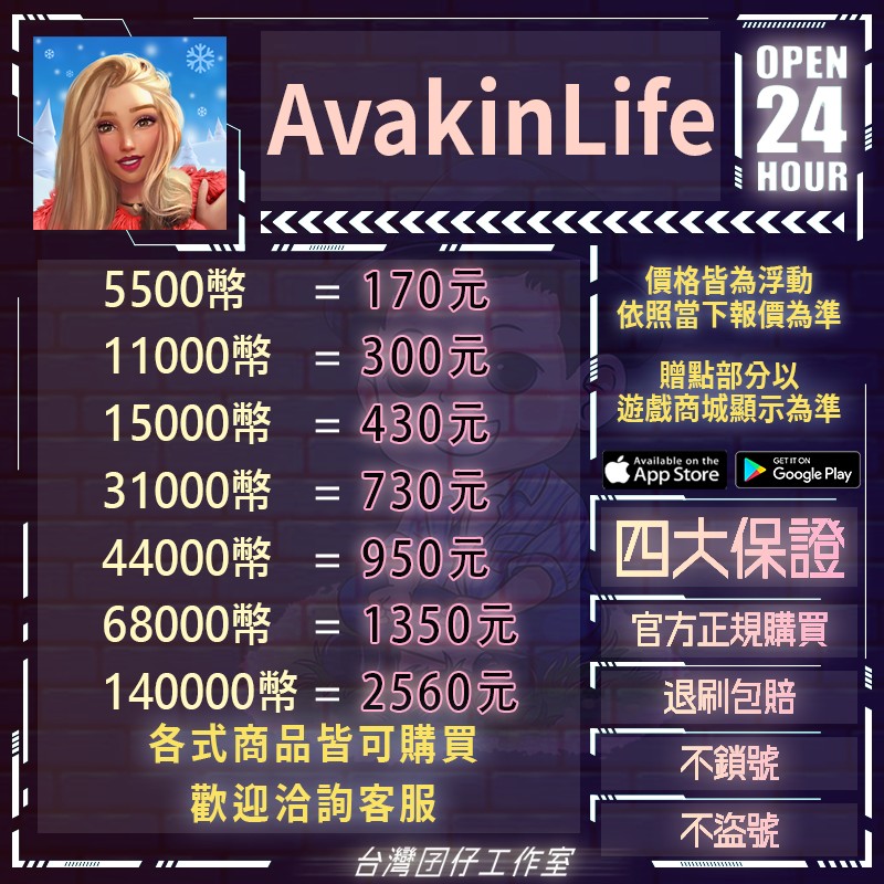 代儲【5500幣=170元】 🏆24H客服🏆Avakin Life🔥現貨秒出🔥台灣囝仔🔥退刷包賠🔥