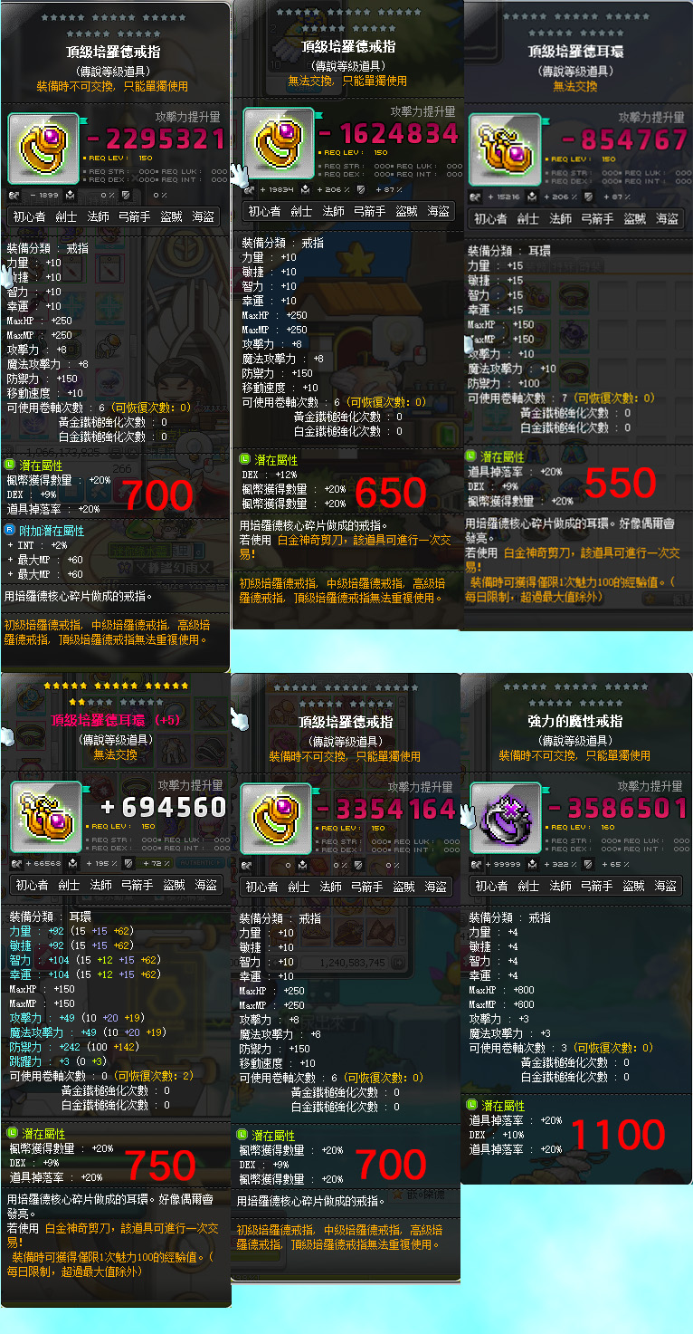 道具 【%敏裝】 [敏] 30%敏33%敏 弓手裝海盜裝 / 小魔大魔 頂鍊頂腰頂戒頂耳 滅龍