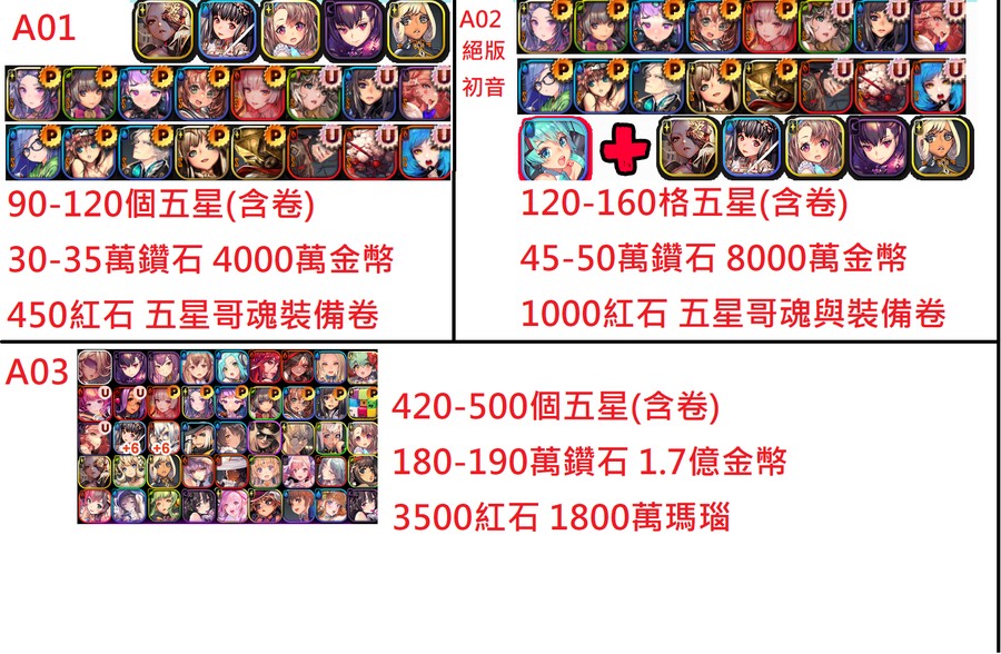【初始號】絕頂角色組合/各式限定/初音/大量鑽石號/30萬石頭號/180-190石頭號