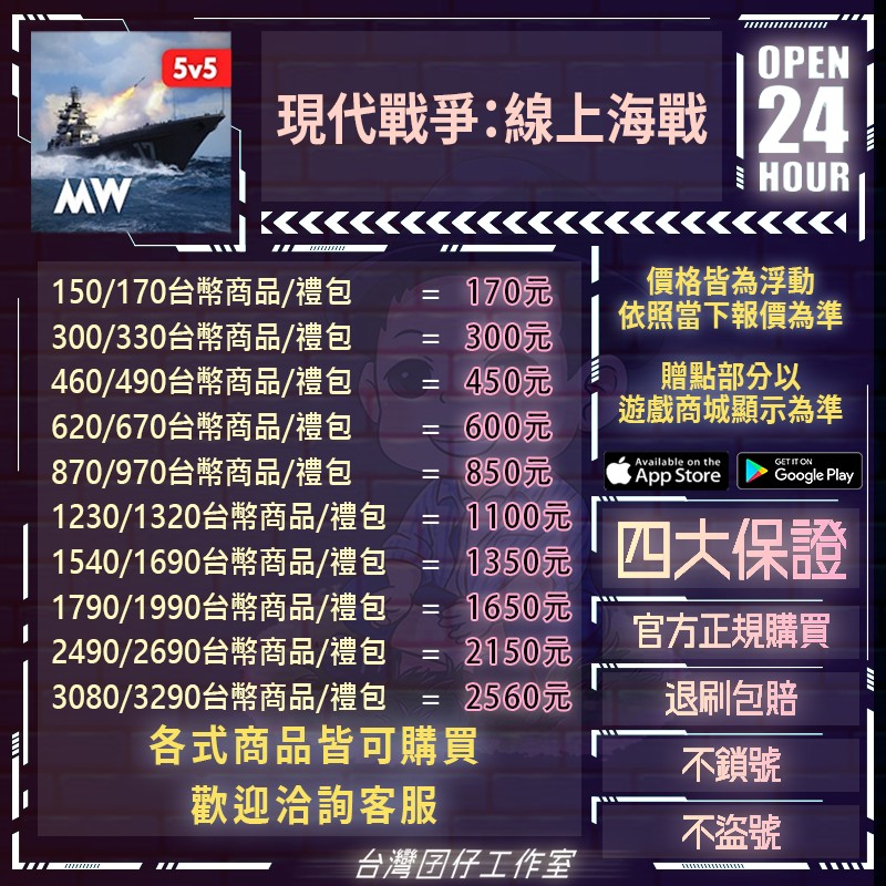 代儲【300/330台幣商品=300元】 🏆24H客服🏆現代戰爭:線上海戰🔥現貨秒出🔥台灣囝仔🔥退刷包賠🔥