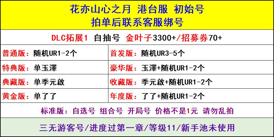 全 8591 首家 花亦山心之月港台服繁中版自選自抽首抽號多SSR組合開局初始號