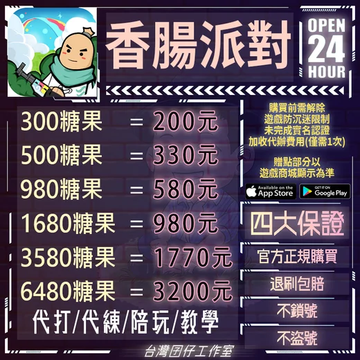 代儲【台服 6480糖果=2600元】 🏆24H客服🏆香腸派對🔥現貨秒出🔥台灣囝仔🔥退刷包賠🔥