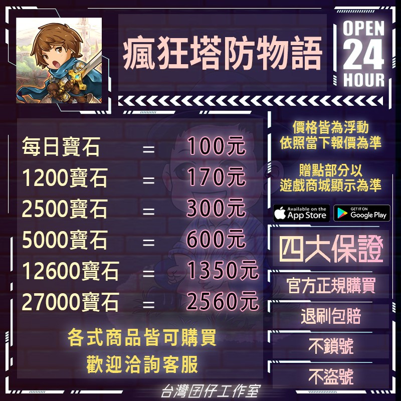 代儲【27000寶石=2560元】 🏆24H客服🏆瘋狂塔防物語🔥現貨秒出🔥台灣囝仔🔥退刷包賠🔥