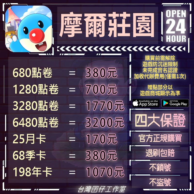代儲【6480點卷=3200元】 🏆24H客服🏆摩爾莊園陸服🔥現貨秒出🔥台灣囝仔🔥退刷包賠🔥