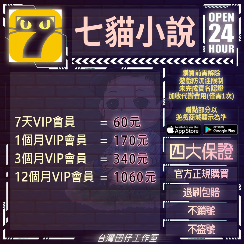代儲【12個月VIP會員=1060元】 🏆24H客服🏆現貨秒出🔥台灣囝仔🔥七貓小說陸服🔥人臉辨識🔥實名認證
