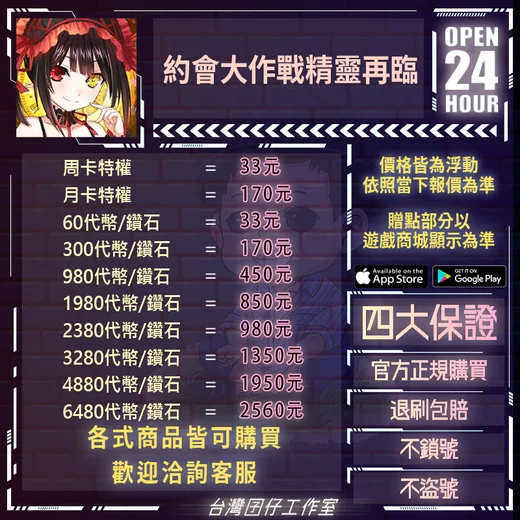 代儲【6480鑽石/代幣=3200元】 🏆24H客服🏆現貨秒出🔥台灣囝仔🔥約會大作戰精靈再臨陸服🔥實名認證❤️