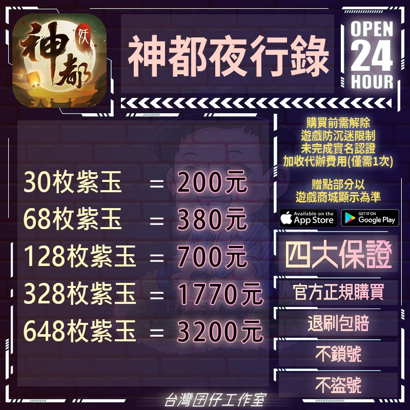 代儲【648枚紫玉=3200元】 🏆24H客服🏆現貨秒出🔥台灣囝仔🔥神都夜行錄陸服🔥實名認證❤️