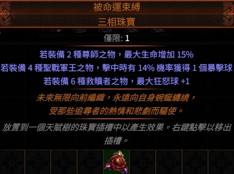 道具 PoE👌傳奇→被命運束縛.三相珠寶(尊師、聖戰軍王、救贖者、塑界狩獵者、總督軍